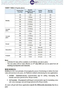 देश की सबसे बड़ी दूरसंचार कंपनी जियो के मोबाइल फोन से कॉल करना और इंटरनेट इस्तेमाल करना अब महंगा हो जाएगा। जियो ने सभी प्री-पेड और पोस्ट-पेड दरों में 12 से 27 फीसदी तक वृद्धि की है । नई दरें तीन जुलाई से लागू होंगी। कंपनी ने सबसे लोकप्रिय 84 दिन . वाले प्लान 666 रुपये में 20 फीसदी की वृद्धि की है। यह अब 799 रुपये में मिलेगा | 28 दिन वाले लोकप्रिय प्लान 239 रुपये में 25 फीसदी की वृद्धि कर इसे 299 रुपये कर दिया है।