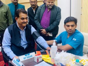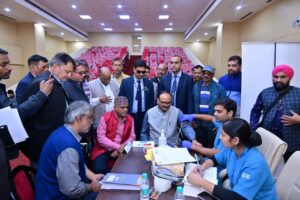 शिविर में प्रमुख सचिव सूचना संजय प्रसाद व सूचना निदेशक शिशिर सिंह ने कराया स्वास्थ्य परीक्षण।