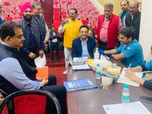 लखनऊ । उत्तर प्रदेश मान्यता प्राप्त संवाददाता समिति (पुनर्गठित) के तत्त्वावधान में एवं लायंस क्लब इंटरनेशनल द्वारा सूचना एवं जनसंपर्क विभाग, उत्तर प्रदेश के आडिटोरियम में आयोजित निशुल्क चिकित्सा जांच शिविर में आज लगभग 148 पत्रकारों का स्वास्थ्य परीक्षण किया गया।